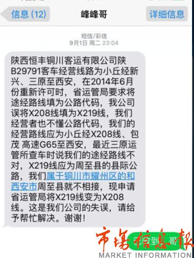 家住铜川市耀州区小丘村的魏振民师傅,从2012年7月份开始,一直经营着小丘至西安的线路,途径新兴和三原,线路正常运营了十三年之久,基本有效的解决了山区老区群众出行难的问题。2014年陕西省交通运输管理局要求他所在的铜川恒丰客运公司将地名变更为路标,并上报所有车辆的延续经营手续。由于铜川恒丰公司对线路情况不太了解,出现了一个小的笔误,将他的车辆代码x204误写为x219,上报给省运管局,省运管局许可处在审核的时候也未发现误写的信息,结果在今年8月份底三原客运股在例行检查的时候发现了他的车辆路码代号不对,就让他停运了。在此之前,他挂靠的铜川恒丰公司于2015年9月13日向陕西省交通厅运输管理局申请纠错,至今仍未解决。