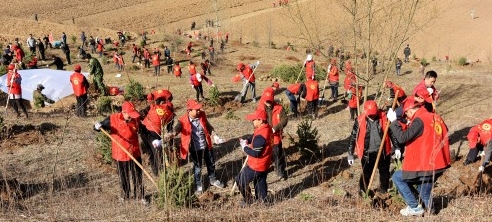 西部网讯:近日,1800余名身穿红马甲的志愿者来到太白县咀头镇北沟村植树添绿,当天共栽植云杉5400棵。