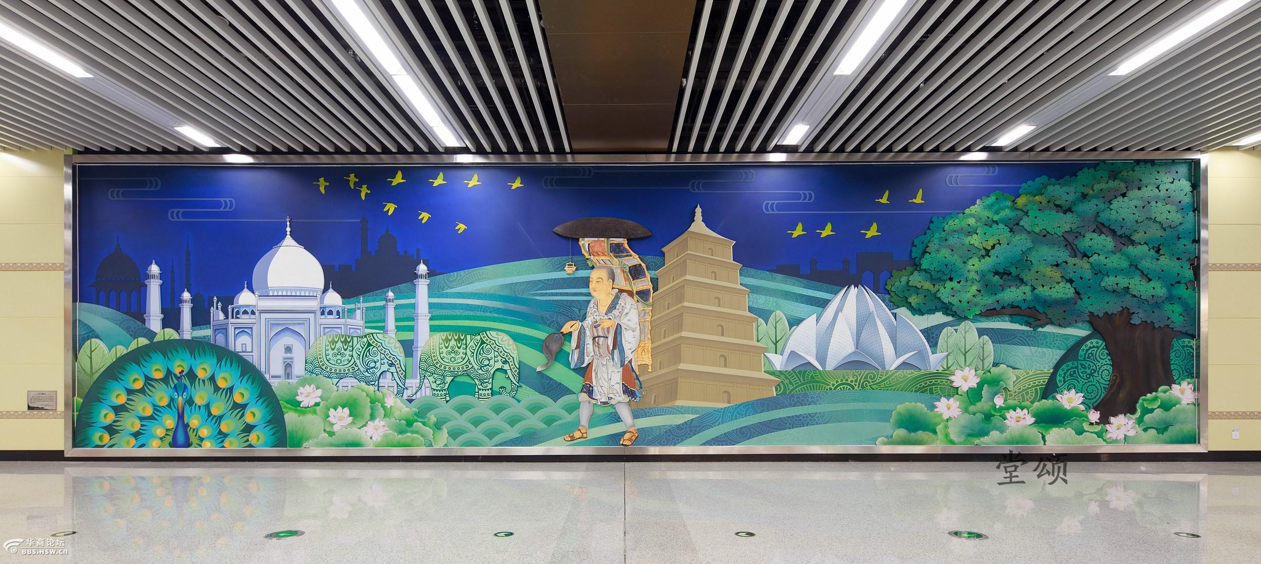 小寨站为换乘站,可以换乘到2号线,两面文化墙。