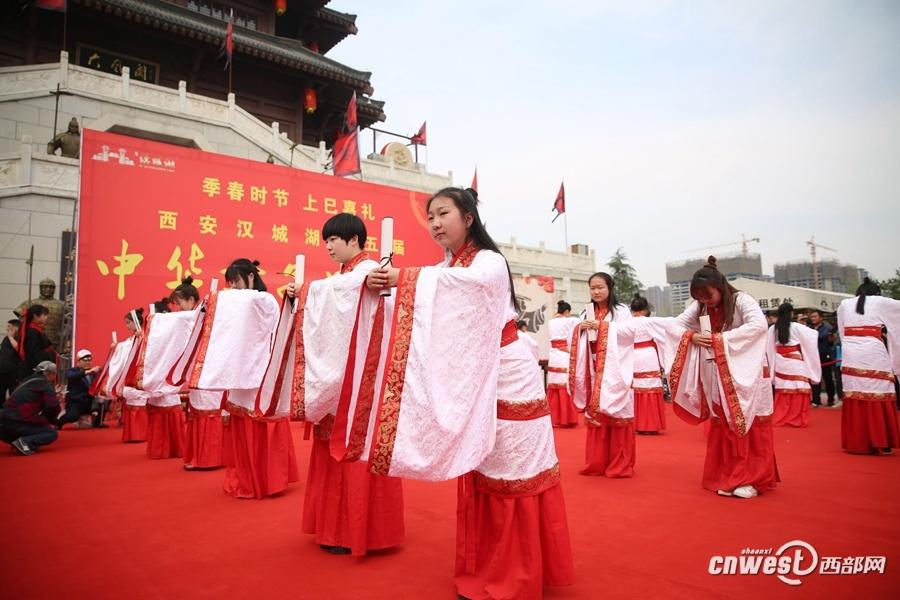4月2日下午, 汉城湖第五届中华女子成人礼在大风阁举行,50名妙龄女子身着传统服饰,挽发髻、插发簪、祭轩辕、礼拜父母师长、诵读誓词等仪式宣告成年,开启人生新征程。