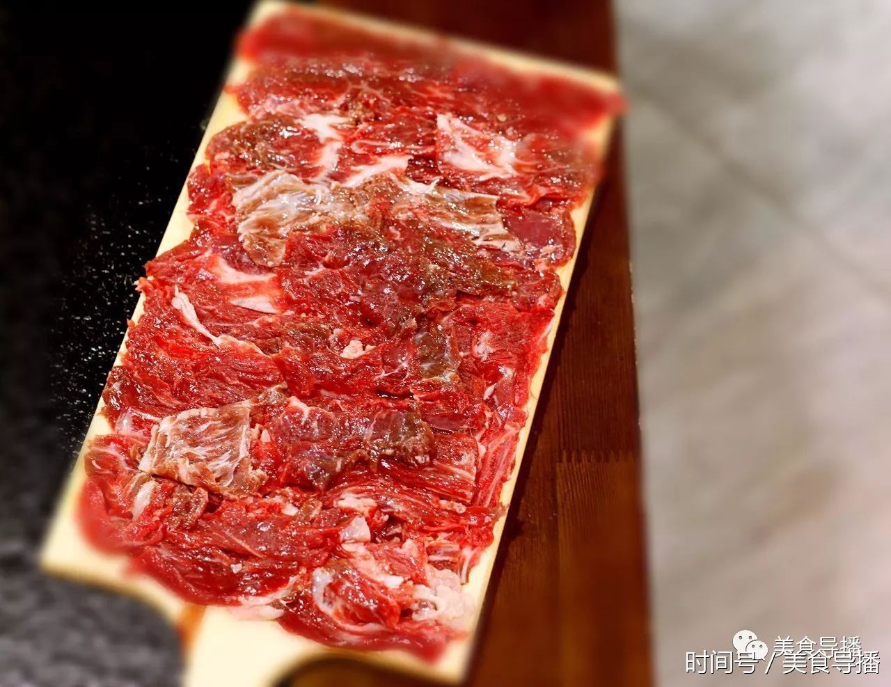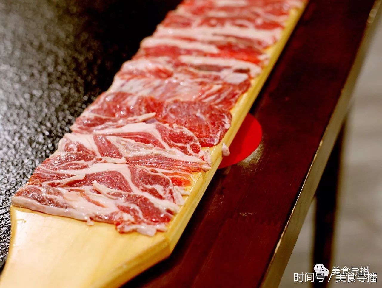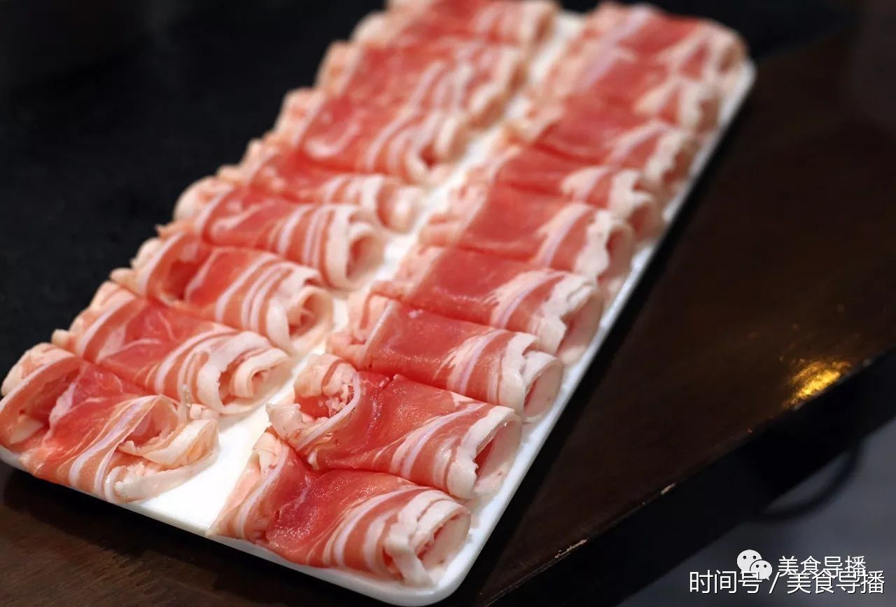上脑,位于肩颈部靠后,脊骨两侧,肉质细嫩多汁,脂肪杂交均匀,有好看的大理石花纹。口感绵软,入口即化,脂肪低而蛋白质含量高,是涮火锅的首选。