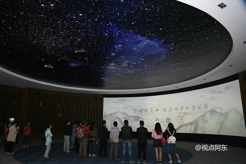 在秦岭终南山世界地质公园博物馆通过巨幕影像了解地质变迁