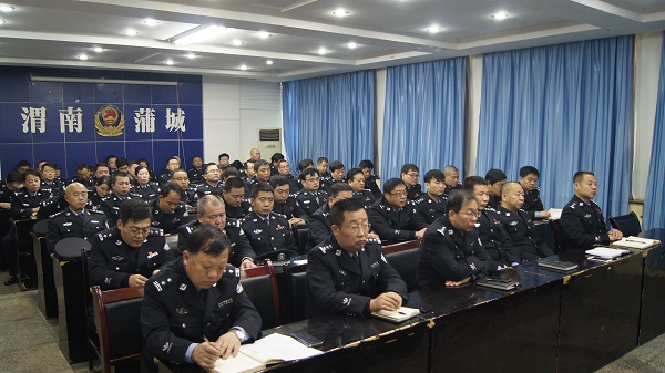 此次年度综合考核主要考核公安业务、三项机制落实、基层党建和党风廉政建设工作四项内容。会上,县委常委、县委宣传部部长陈淑霞作为考核组带队领导对县委年度综合考核内容、细则和要求作了详细介绍,要求考核组要实事求是、严格公正的考核工作,为进一步促进公安工作、提升群众安全感和满意度提供详实依据。之后,蒲城县公安局局长李启平代表公安局班子进行会议述职述廉。李启平从领导班子建设、公安队伍正规化建设、公安业务追赶超越、扶贫攻坚工作等四个方面向县委考核组汇报了公安局2017年度工作。他在汇报中指出,过去一年来,蒲城公安局党委充分发挥班子引领作用,紧紧围绕公安队伍正规化建设,以习近平总书记“对党忠诚、服务人民、执法公正、纪律严明”十六字方针为指导,以党建促进队建,努力锻造蒲城公安铁军。2017年,蒲城公安扎实开展“作风建设年”活动改进作风,创新建立了“蒲城公安夜校”,通过民警积分考核深入推进“三项机制”落实,强力推出“加强队伍管理十项铁规”提升管理水平,盘活了队伍,激发了活力,公安工作取得长足进步,全年工作亮点不断。“2017秦鹰”严打整治专项行动中,蒲城公安共打掉各类违法犯罪团伙46个,成功破获了公安部督办的“12.16”特大电信诈骗案、方某网络贩枪案、“8.12”生产销售有毒有害食品案等6起国字号大案,实现了发案大幅下降、破案大幅上升的历史性突破,取得全市第一的好成绩。在禁毒工作中,蒲城公安创新模式,研发了全国首个社会化禁毒信息系统和吸毒人员分色管控平台,实现全县吸毒人员网格化精准管理,延伸了涉毒违法犯罪打击力度,从中破获部级目标案件2起,省、市目标案件5起。特别是部级“2017-229”毒品目标案件,实现全国28省联动,抓获涉毒违法嫌疑人200余名,受到公安部刘跃进专员、省厅胡明朗厅长、曾岚副厅长、张安新副厅长等各级领导的批示肯定,蒲城禁毒工作跃居全市第一,全省、全市禁毒工作现场推进会因此在蒲城召开,蒲城模式被全省推广。蒲城公安改革同样成绩显著,“社会化禁毒”、经侦“云端行动”、治安“易制爆物品和寄递物流专项行动”等省市五个现场会先后在蒲城召开;“微信服务侦查破案新模式”等五项改革被市局采用推广;出入境大队创新服务模式,成为全省全市样板。2017年是蒲城公安值得骄傲的一年,在十九大安保维稳工作中,公安局领导靠前指挥,全体民警按照战时工作标准,连续作战3个月,确保了全县社会治安大局绝对稳定,蒲城县局荣获全市党的十九大安保维稳“突出贡献奖”,刑侦大队荣立集体三等功,另有11名民警分别荣立个人三等功,受到市局嘉奖,数量质量均居全市首位。脱贫攻坚蒲城公安同样不甘落后,蒲城公安扶贫干部坚持为帮扶包联的永丰镇温汤村做好事、解难事、办实事,先后为其硬化生产路6000余米,精修水利灌溉渠3000余米,建成食用菌种植产业园,引进了小手工加工项目,组织了大型健康义诊,提前完成自来水改造工程,低调务实的作风赢得了群众的真心称赞,群众自发为公安局送来感谢信2封、锦旗11面。