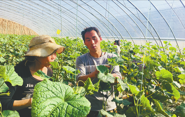 193座日光温室大棚,3座无土栽培大棚,无论走进哪座大棚,记者的眼镜总是立刻被蒙上一层水汽,整个人热得需要立即脱掉外套,把袖子撸得老高。挂在空中的数码温度计显示,棚内气温28.6℃。