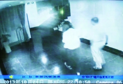 据发帖者上传的视频显示:10月24日21时02分11秒,一男子现身金海花园宾馆前台,办理开房手续;21时02分34秒,男子取卡上楼;21时04分54秒,男子与一名穿白色上衣的年轻长发女子出现在2楼走廊上,先后进入左边最里侧215房间;约一个小时后,在22时10分35秒时,二人从215房间出来下楼离开宾馆。