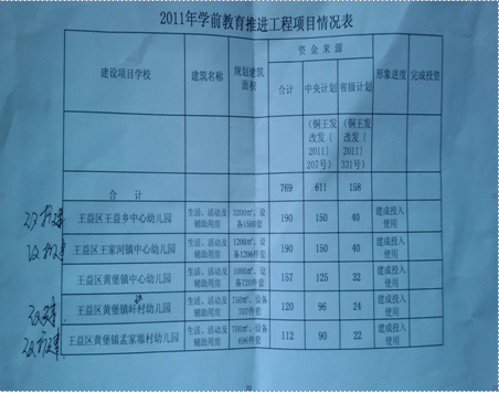陕西网工作人员调阅发改部门有关资料显示:国家发展改革委关于下达中西部农村学前教育推进工程试点项目,用于新建和改扩建部分乡、村幼儿园,扩大学前教育资源,改善办园条件。铜川市王益区也是此次试点中的重点区(县),中央预算内新建投资611万,地方投资158万,分别为王益区王益乡中心幼儿园中央预算内技资150万元,地方投资40万元;王益区王家河镇中心幼儿园,中央预算内投资150万元,地方投资40万元;王益区黄堡镇幼儿园,中央预算内投资125万元,地方投资32万元;王益区黄堡镇屽村幼儿园中央预算内投资96万元,地方预算内投资24万元;王益区黄堡镇孟家塬村幼儿园,中央预算内投资90万元,地方投资22万元,5个幼儿园项目均为新建。9月21日一大早,本网工作人员专程赶往铜川市王益区实地调查。来到王益区王益乡经多方打听找到了中心幼儿园,幼儿园附近常年经商的李先生告诉本网工作人员,这所幼儿园是在原来小学旧教室经改造而成根本就没有新建。本网工作人员来到王益区黄堡镇走访,文件中所显示的孟家塬村幼儿园,在原孟家塬小学改修而成。在黄堡镇,一位知情者告诉本网工作人员,你们不用再跑了,黄堡镇新建三所幼儿园都没有新建,都是由旧小学改扩建而成。
