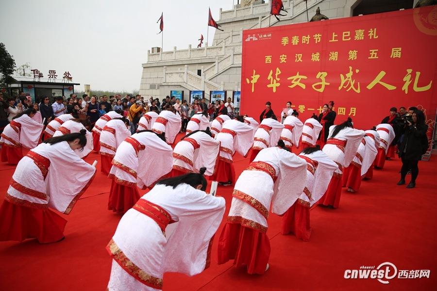 4月2日下午, 汉城湖第五届中华女子成人礼在大风阁举行,50名妙龄女子身着传统服饰,挽发髻、插发簪、祭轩辕、礼拜父母师长、诵读誓词等仪式宣告成年,开启人生新征程。