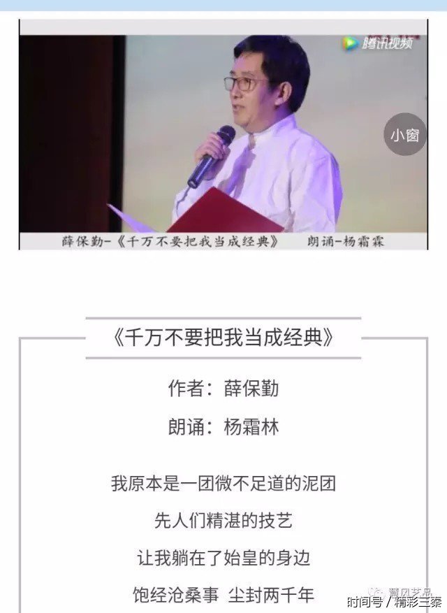 好吧,言归正传!请听杨霜林先生跨界朗诵薛保勤先生诗作:《请不要把我当成经典》。