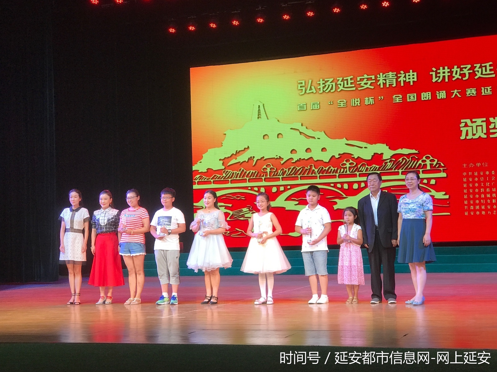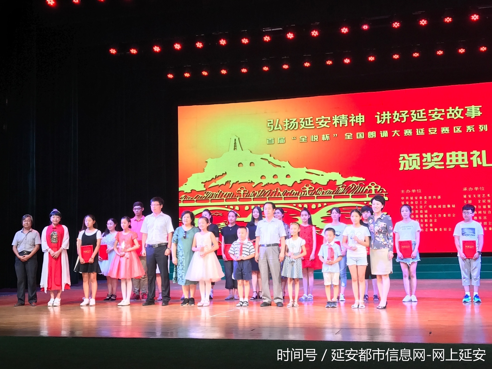 本次活动由延安市委宣传部、市总工会、市文广新局、市教育局、市直机关工委、团市委、市妇联和市方志办等单位联合主办,“全民悦读”木兰书院读书会、延安市住宿餐饮行业协会、延安唐乐宫、延安市文化艺术中心、延安新闻综合广播、延安市演出公司等单位协办。晚会特邀北京市青年女作家、影视编剧、导演张瑜琳、张丹丹和影视童星万子晴、王若昀及陕西广播电视台、延安广播电视台主持人和朗诵名家与本次大赛获奖选手同台表演,为大家带来一台红色文化精神盛宴!