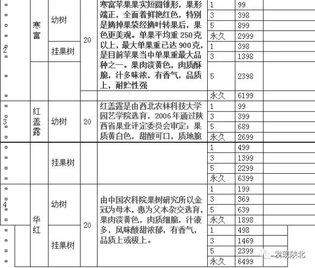 蜜脆(家庭幸福树):120棵,挂果20公斤/棵 ;寒富(事业树):120 棵,挂果20公斤/棵;