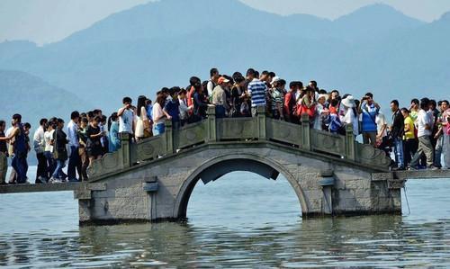 去年国庆期间,杭州西湖景区共接纳1500万人次的游客。换句话说,这么多人如果手拉手的话,可以绕西湖1100圈。如果今年国庆节在西湖看风景,看的定是“人山人海”。可要小心别被挤到湖里去。