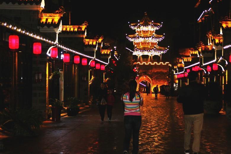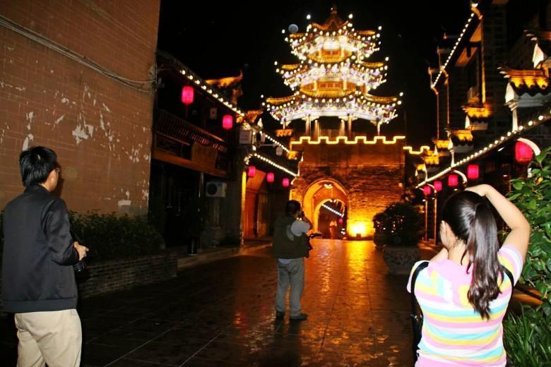 老街下面就是汉江,平日里江水碧绿,绕城而过,在炎热的夏季到 江边锤钓,纳凉,游泳,江风吹来,独到的风景让你留恋往返。我去的时候正值雨季,此时的汉江波涛翻滚,犹如一条腾飞的巨龙绕城而过。夜幕降临,河岸对面的灯亮了,汉江两岸变成了灯的海洋,光的世界,对面的“石泉十美”映入我的眼帘,