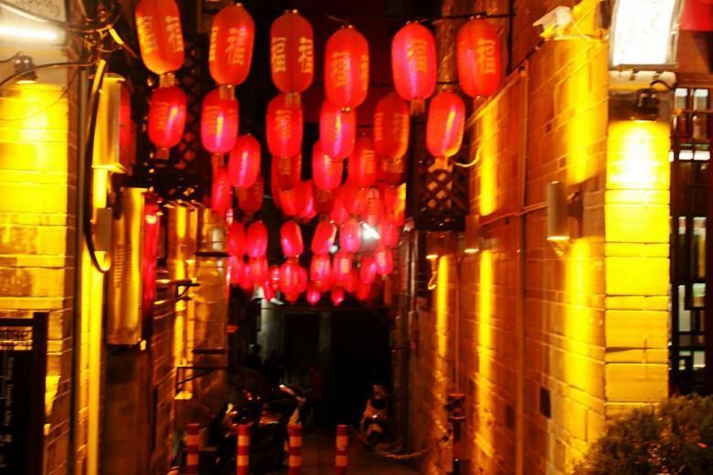 第二天清晨,走在老街上,一种怀旧的感觉油然而生,老街虽是现代经营,可保持古代装饰,街道两边都是横插的洒幌,药幌,红漆大门,大红灯笼。现代餐饮部,古代的县衙警署,上世纪的新华书痁,税务局,就象当今流行的穿插剧一样让人恍惚游离现代的灯红酒绿或古代商贾云集繁华都市之中。游离于500年前,甚至更远些。一条老街不算太长,四十分钟足能品出点味道来。那些纵横穿插的小巷静静的,只有那墙壁上的青苔漫生的痕迹所显历史的久远。