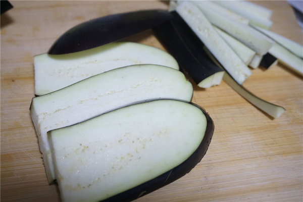 1、长茄子洗净切小丁,用水侵泡10分钟。