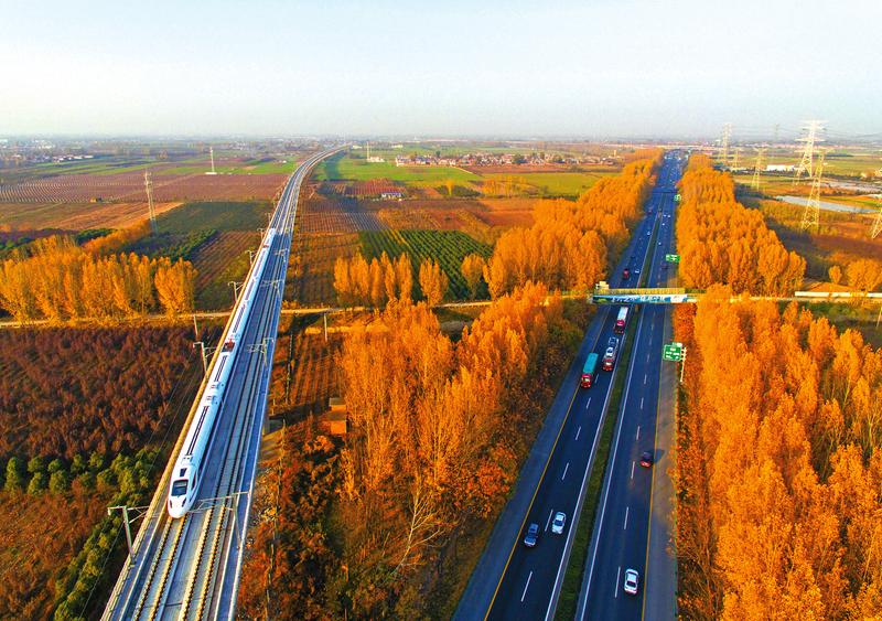 11月26日,参加西成高铁模拟运行的55256次动车组列车从紧邻西汉高速公路的沣河特大桥上飞驰而过。高铁时代,“蜀道”沿线将迎来全新的发展机遇。西成高铁全长643公里,设计时速为250公里,开通后,西安与成都两地铁路旅程将由目前约16小时缩短到3小时左右。