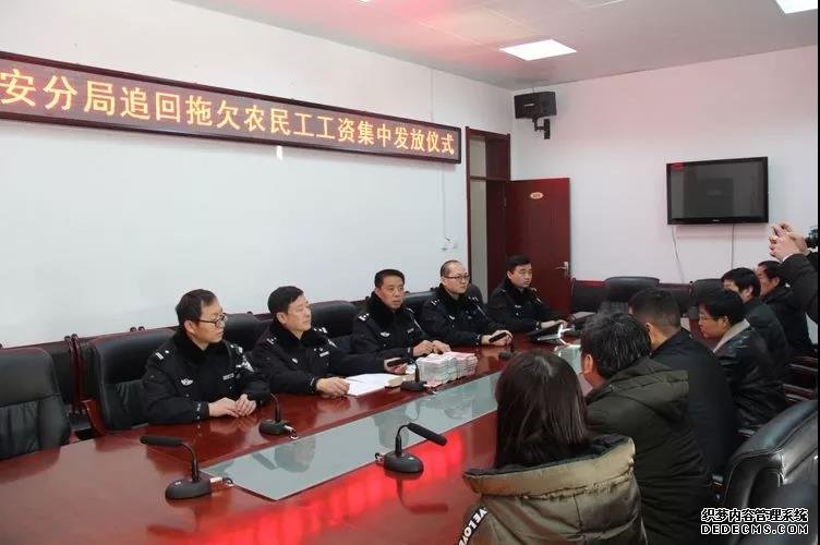2018年1月11日上午,铜川市公安局耀州分局在六楼会议室举办追回拖欠农民工工资集中发放仪式,集中发放104名农民工被拖欠工资28.06万元。耀州公安分局副局长唐江涛、永安路派出所所长薛保利及办案民警、农民工代表出席了发放仪式,铜川市电视台、人民日报社人民数字、阳光报等新闻媒体参加了发放仪式。