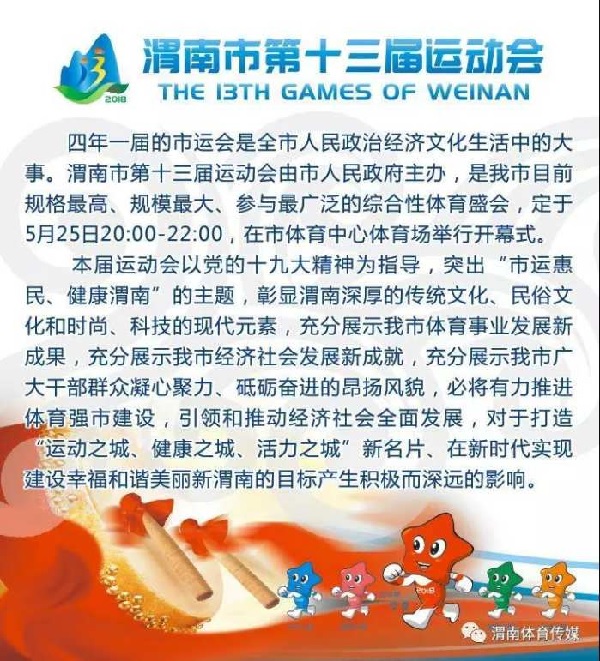 “市运惠民, 健康渭南”第十三届运动会开幕式将于5月25日在渭南市体育中心举行